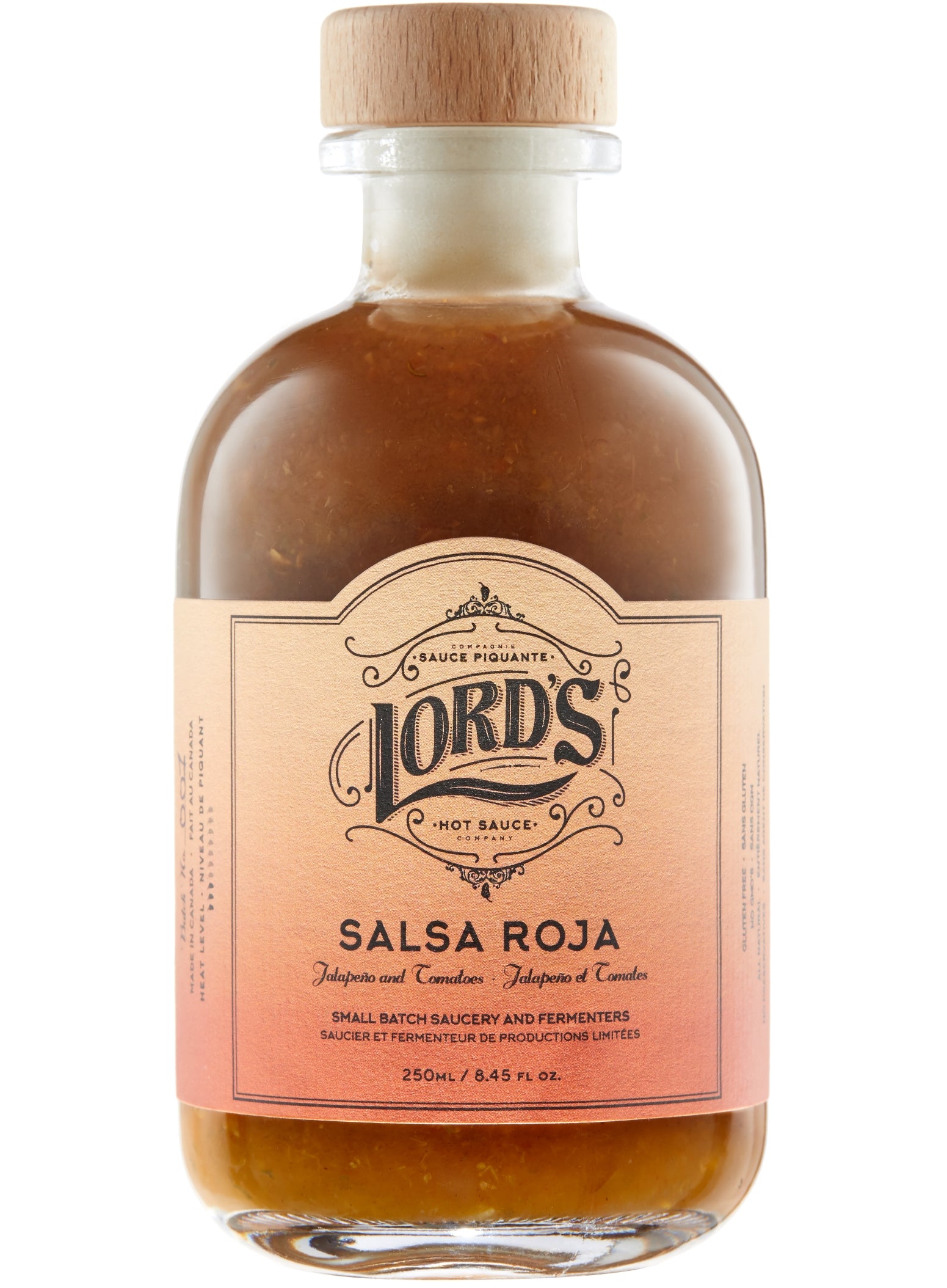 Lord’s Salsa Roja pays homage to the famous red sauce found on tables across Mexico. The combination of vine ripe tomatoes, jalapenos, onion, garlic, lime and cilantro give this tomato based hot sauce a garden-fresh salsa flavour.